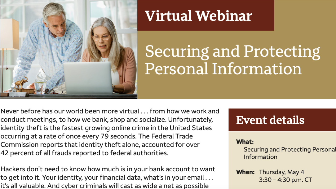 Join us for a FREE webinar hosted by Wells Fargo on May 4, from 3:30-4:30 Central Time.